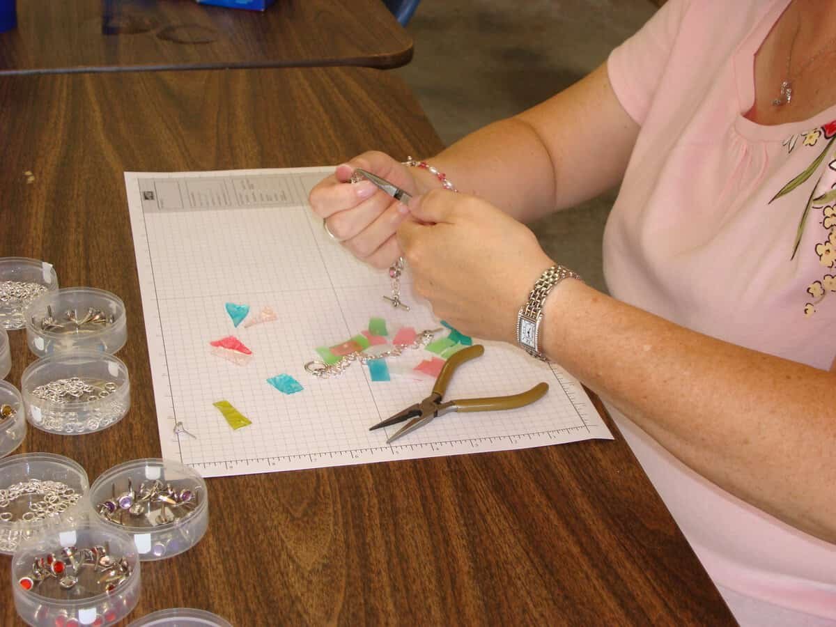 We had the MOST fun on Saturday… working on our Faux Seaglass bracelets… of course.. yes.. this is another SHARON IDEA! 🙂 She helped me lead the class with instructions of how to make the faux seaglass pieces from Shrink Plastic!!