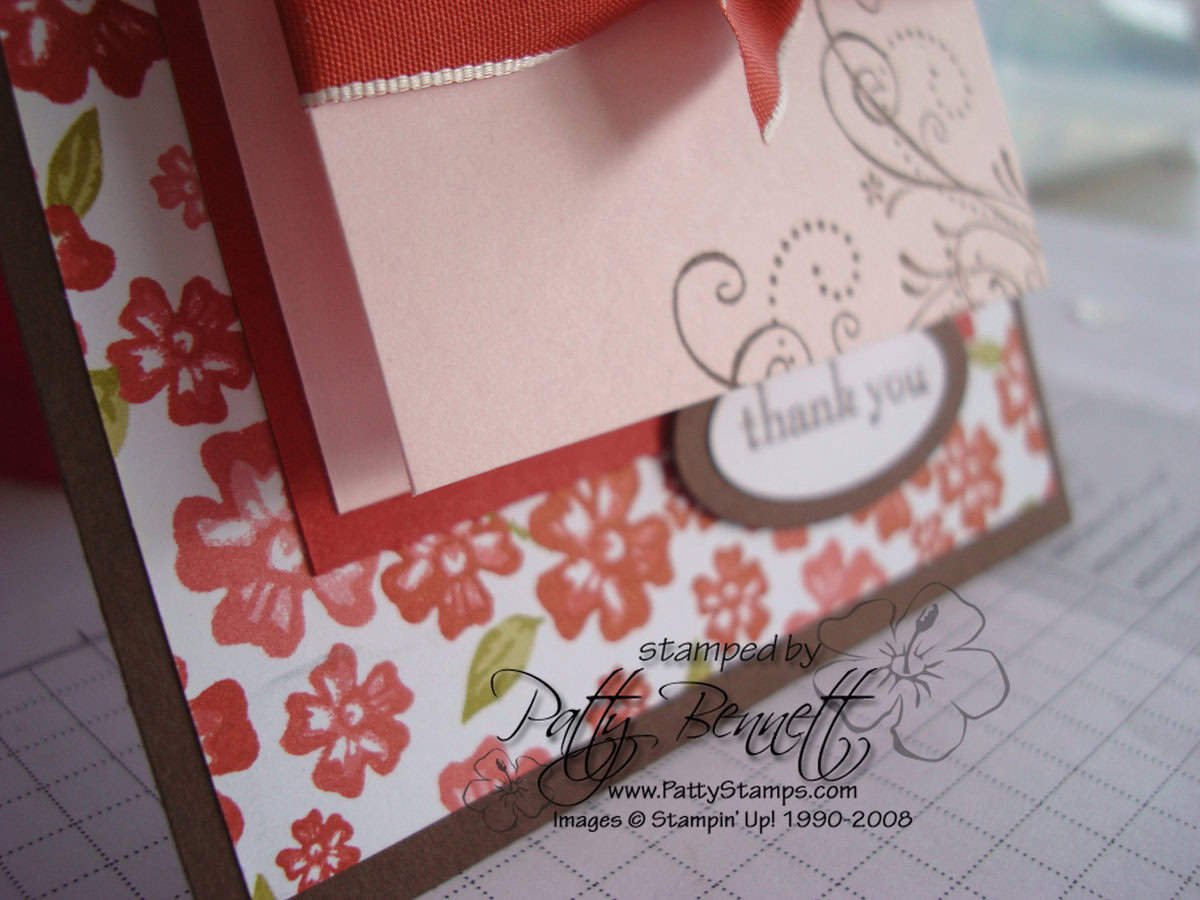 This card from my Fun Folds Class this week has TWO fun folding parts.. first of all, it has a fun "closure" the way the pink folded flap tucks under the oval greeting, and secondly, the flower petals all fold under!!