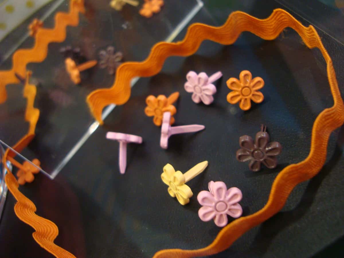 - 4 Flower Assortment brads (one Pumpkin Pie, one Pretty in Pink, one So Saffron, one Chocolate Chip)