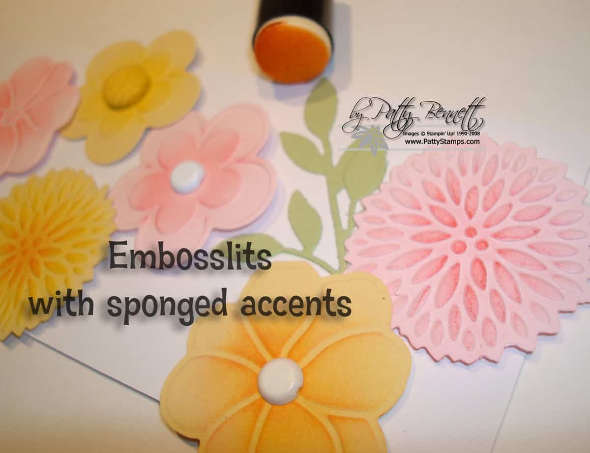 Patty, your are the best! I love these embosslits, but was struggling with using them. You have added dimension to them with the sponged accents. Great idea and beautiful sample.