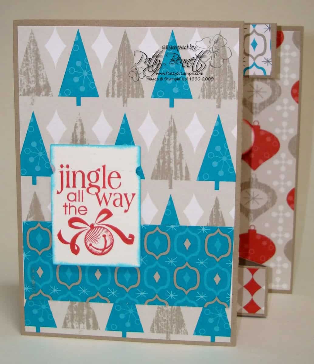 This card features the Holiday Lounge Designer Paper from Stampin' Up!, and students had their choice of either making a Christmas card or a Birthday card.