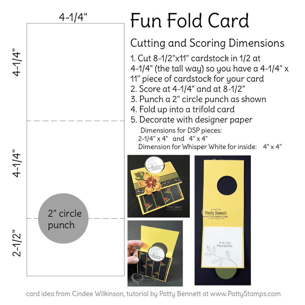 Feel free to print and save the instructions below for the Fun Fold Card. I have 2 versions for you, mentioned in the video. You can either make 2 cards from an 8-1/2" x 11" piece of cardstock, or make 3 cards from a 12" x 12" piece of cardstock.