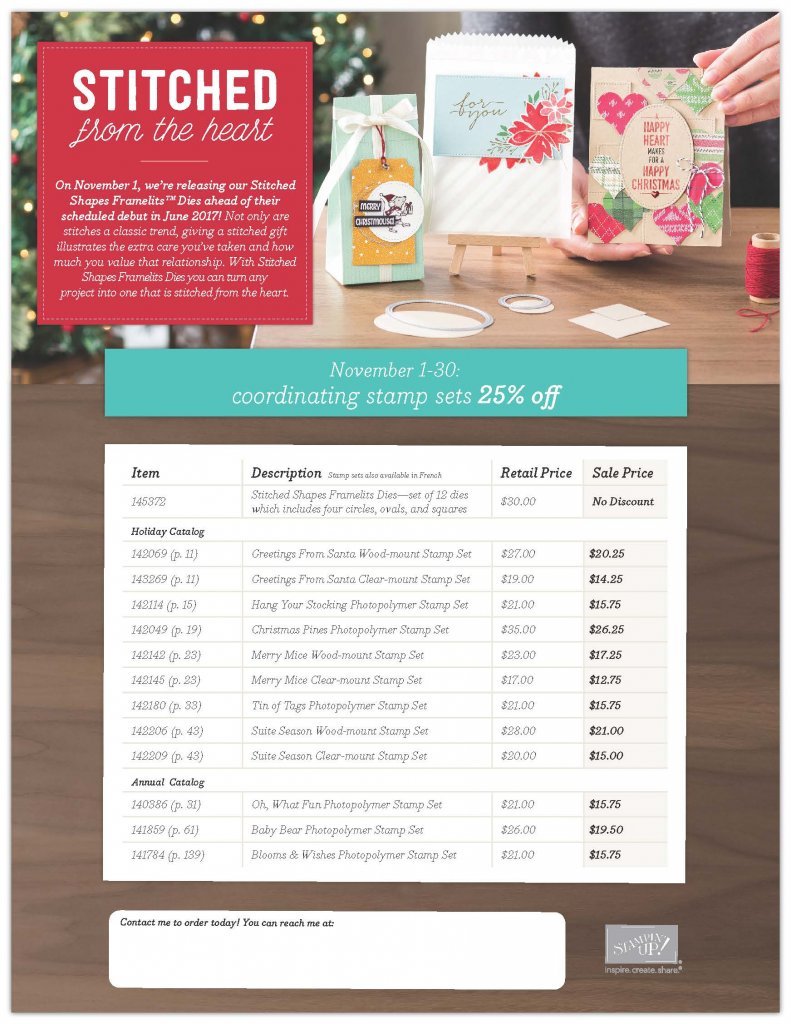 2. 25% off several stamp sets that coordinate perfectly with the Stitched Shape Framelits!! (Nov. 1 – 30 only) – see the list below, click to order, or click to Download Nov Stamp Set Sale flyer